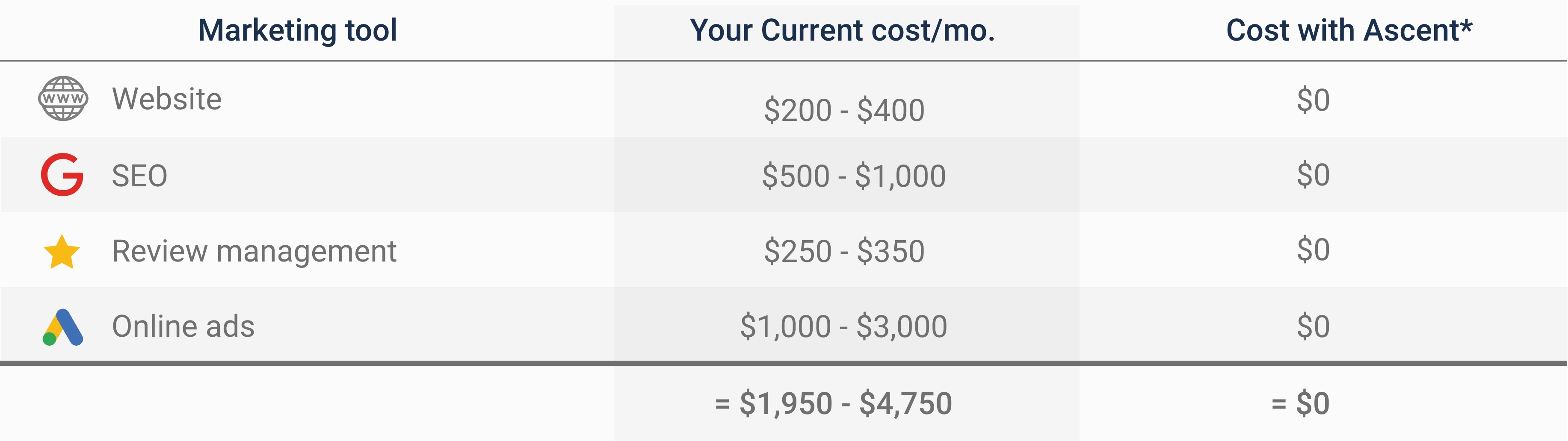 Not only does this cost you nothing until we bring a new patient in the door, but Ascent invests heavily in you right up front! We cover the cost of your new web site development, Google Ads, SEO, reputation management software and so much more! Ascent takes all the risk! While you get new patients….lots of them!